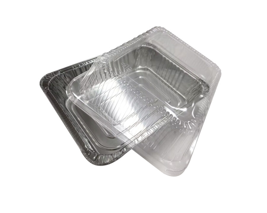 360mm x 290mm x 78mm Rectangular Foil Tray with Plastic Lid Pk3