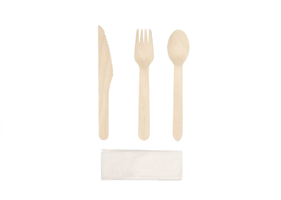 Wooden Cutlery and Napkin 4 Piece Set Pk10